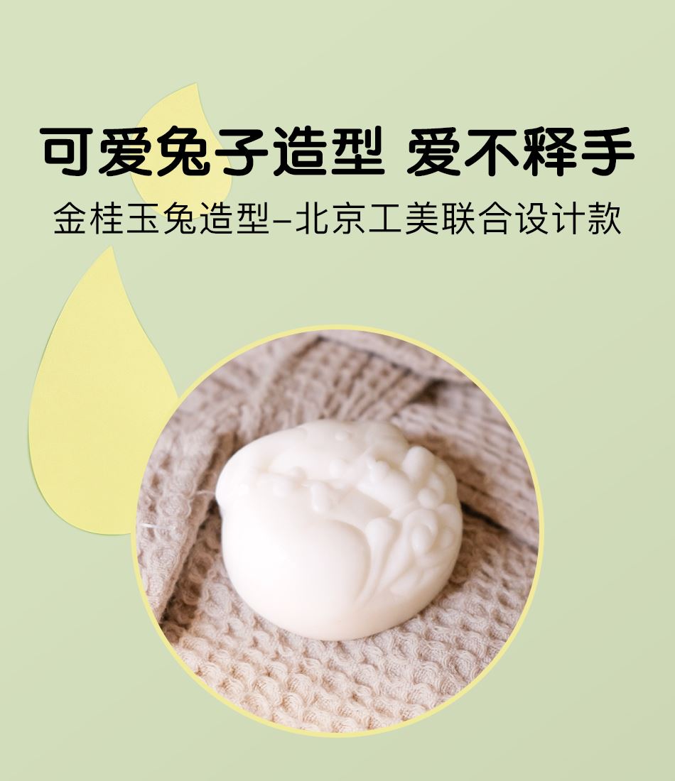 溫和檸檬甜橙精油皂,兔子造型 北京工美合作款。 便攜硅膠套包裝,一包多用,可掛于書包上。